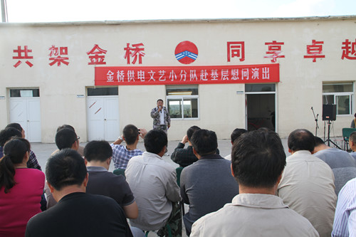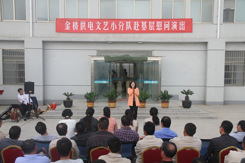 近日,為慶祝建國65周年,進一步踐行黨的群眾路線,豐富基層職工文化生活,公司工會組織文藝小分隊深入供電所等基層單位巡回慰問演出,為一線職工送去精彩紛呈的“文化大餐”,贏得了基層職工群眾一致好評。 在臨時搭建的舞臺上,文藝小分隊自編自演的的歌舞、相聲、詩朗誦、器樂彈唱等豐富多彩的節(jié)目,貼近基層,貼近生活,謳歌金橋供電十年成就,展示金橋供電職工風(fēng)采,贏得了現(xiàn)場觀眾陣陣掌聲。中間還穿插了擊鼓傳花觀眾互動節(jié)目,基層職工踴躍參與,氣氛活躍。最后,演出在會場全體人員齊唱《歌唱祖國》中圓滿落下帷幕。 公司自成立以來,一直注重企業(yè)文化建設(shè),利用多種形式活躍基層文化生活,滿足員工多層次、多角度的精神需求。不僅加強基層單位“職工小家”建設(shè),建立了“職工書屋”、職工活動室、乒乓球室、羽毛球活動場地等基礎(chǔ)設(shè)施,還舉辦了職工運動會、籃球賽和文藝演出等活動。不僅發(fā)揮傳統(tǒng)職工文化活動的優(yōu)勢,而且還創(chuàng)新具有時代特色文化活動的形式,不斷增強員工的凝聚力和向心力。通過本次深入基層慰問演出,不僅為戰(zhàn)斗在一線的基層職工獻上一份精神“大餐”,同時也展示了金橋供電的良好作風(fēng)和企業(yè)形象。(趙艷)