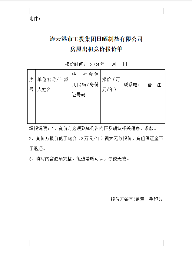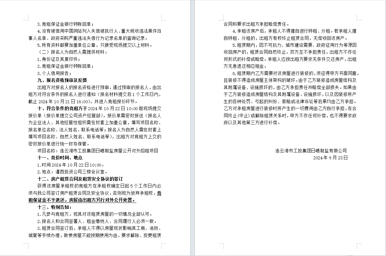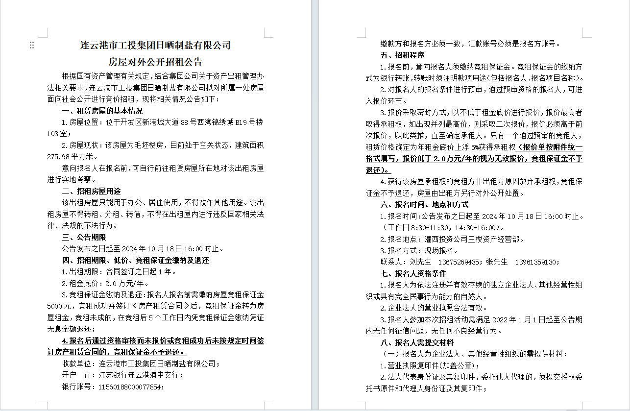 連云港市工投集團(tuán)日曬制鹽有限公司 房屋對(duì)外公開(kāi)招租公告