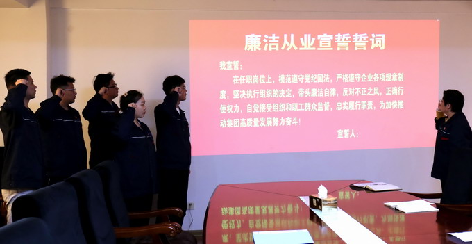 會(huì)議傳達(dá)了集團(tuán)紀(jì)委《關(guān)于扎實(shí)開展年輕干部“廉政教育月”活動(dòng)的通知》文件精神,簽訂了《廉潔承諾書》、發(fā)放了《家庭助廉倡議書》和進(jìn)行廉潔從業(yè)宣誓。