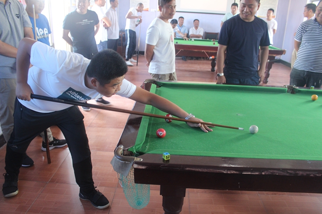 ? ? 臺球初賽采用三局兩勝淘汰賽制,抽簽決定比賽對手和上場順序,第一輪勝出者進入下一場比賽,前四名選手進入決賽。本次共有32名選手報名,參賽隊員雖然都是業(yè)余愛好者,但每名參賽選手態(tài)度非常認真,臺球桌前,他們不停地走動尋找最佳擊球點,架桿、出桿、撞球、落袋,過程緊張而激烈,博得觀眾陣陣掌聲。經(jīng)過多輪角逐,服務(wù)中心張建軍獲本次比賽的冠軍,大新農(nóng)場徐振濤、候玉剛及服務(wù)中心張根林獲得二等獎。