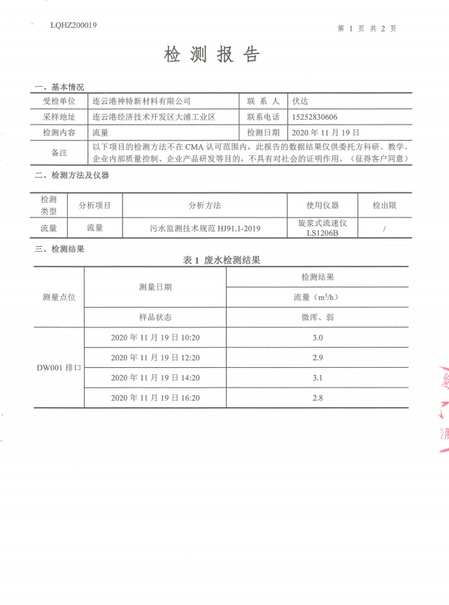 神特公司檢測報告公示